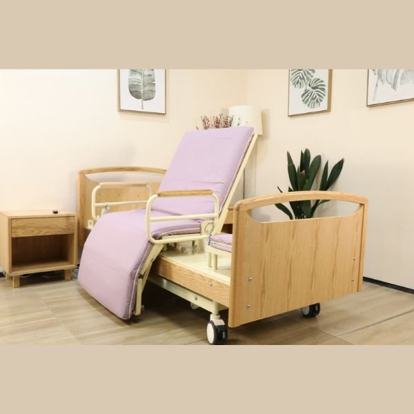 Comfortable and adjustable electric medical bed with safety side rails, ideal for home and hospital patient care.